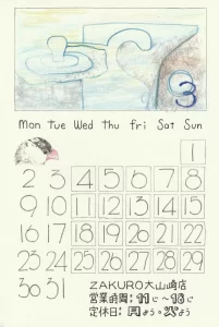 - 2026年3月のスケジュール【2026年3月の営業日のお知らせ】 ZAKURO 京都・大山崎SHOP 3月営業日のご案内。 冬季オリンピックも終盤。オリンピックが終わると春が来たと感じそうです。 3月からまた、裏山登山再開したいですね。 2026年 […]