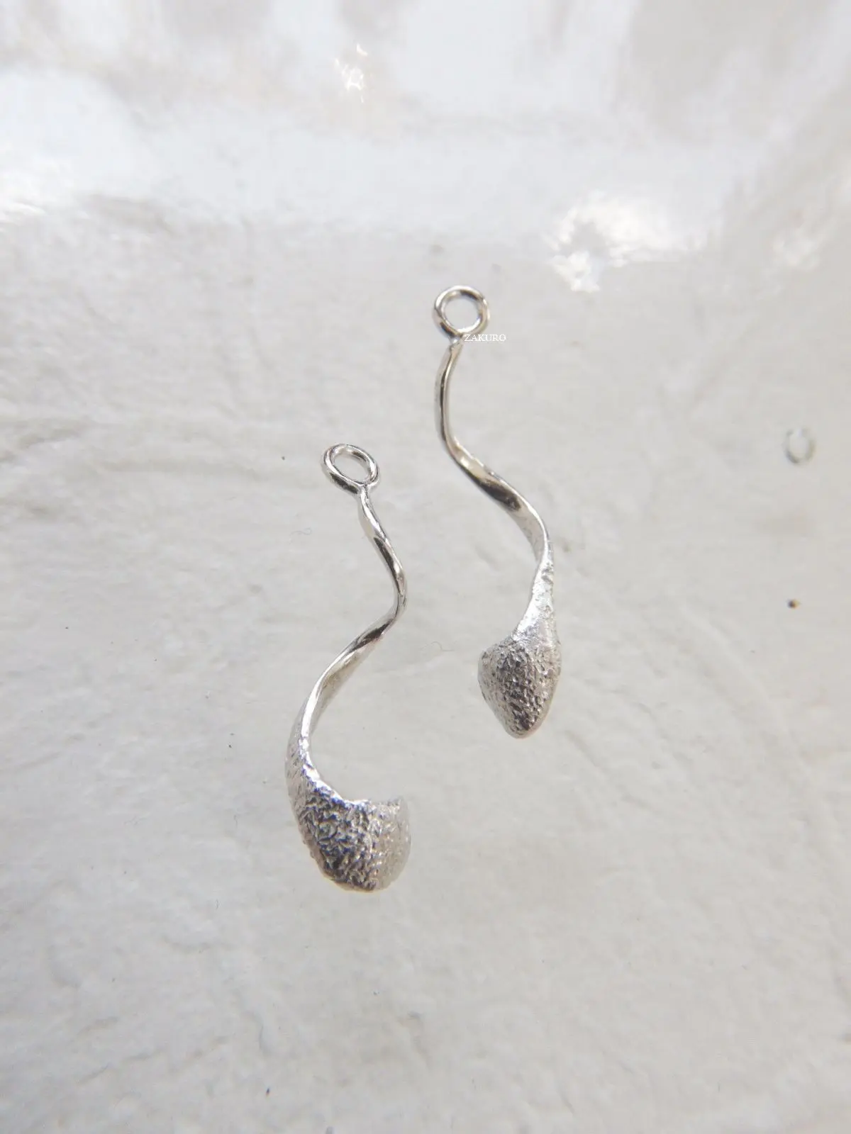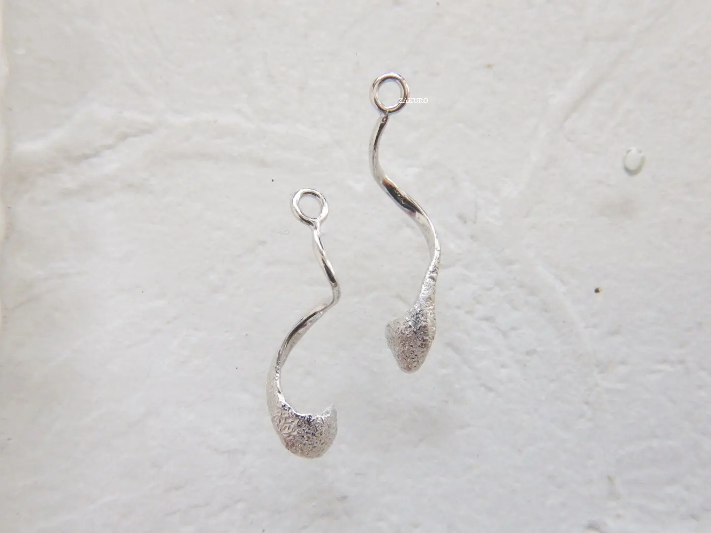 波のように揺れるシルバーが光をまとい、耳元に、軽やかなリズムを添えるチャームです。