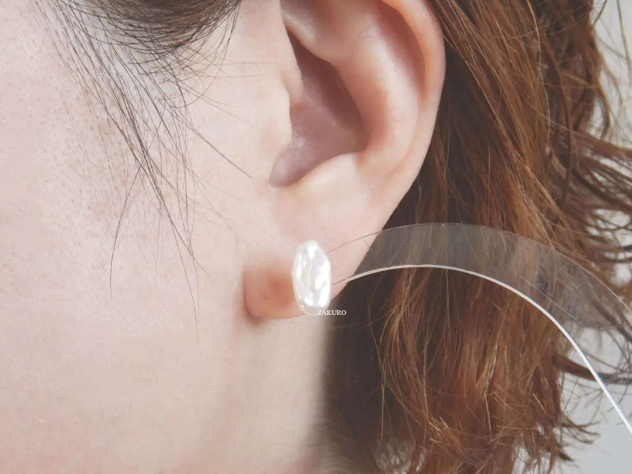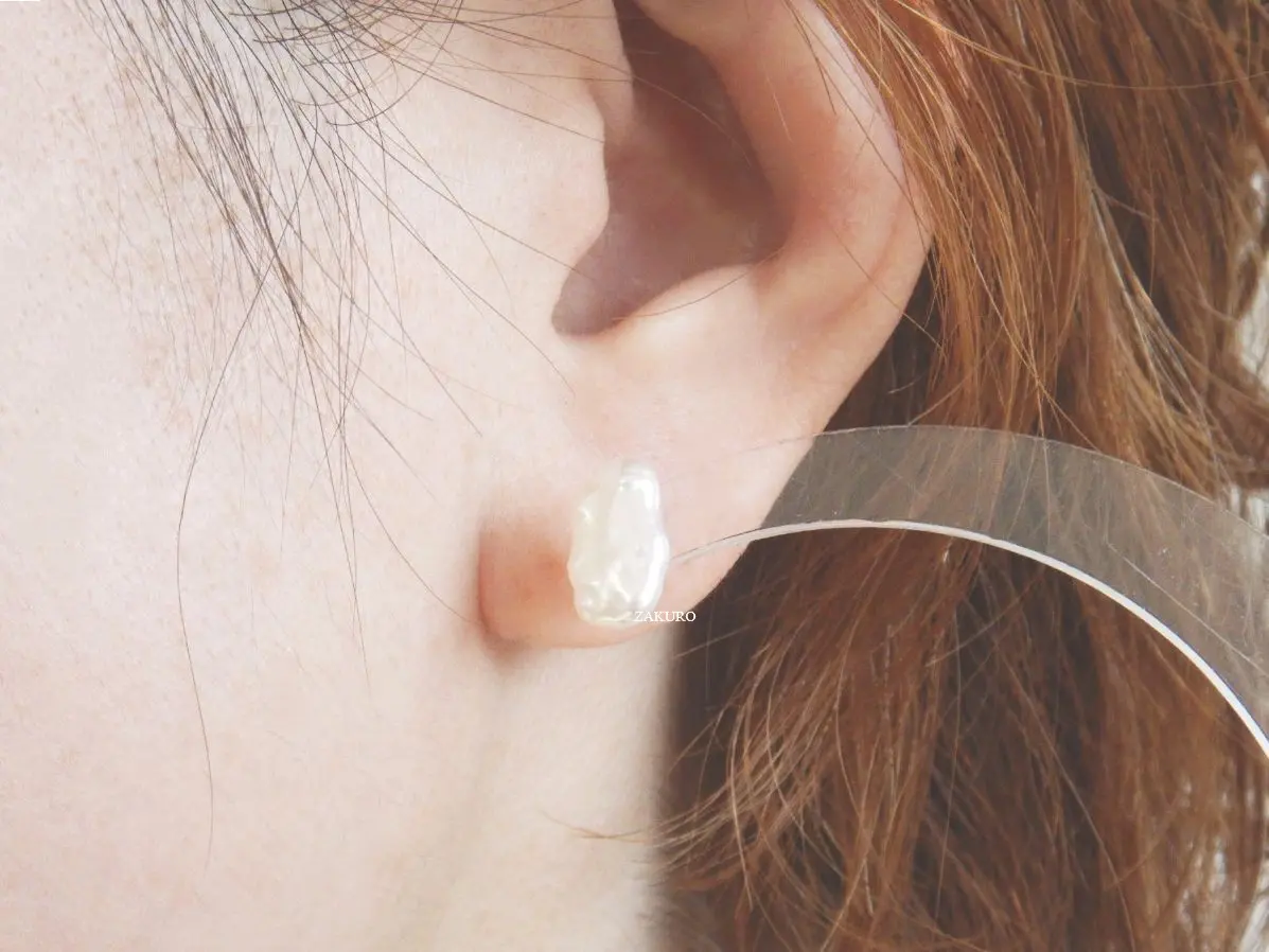 平ぺったい真珠のため、耳たぶにフィットします。