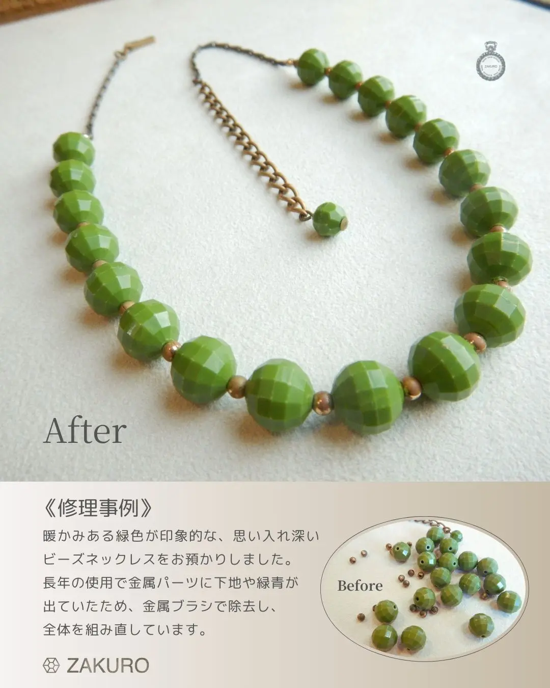 今日は、依頼主様お気に入りのビーズネックレス修理のご紹介です。