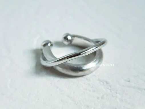 ダブルループ シルバーイヤーカフ(甲丸)R