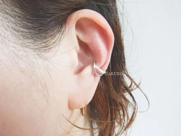 太めの甲丸ループに、細い線のループが重なるシルバー製イヤーカフ。