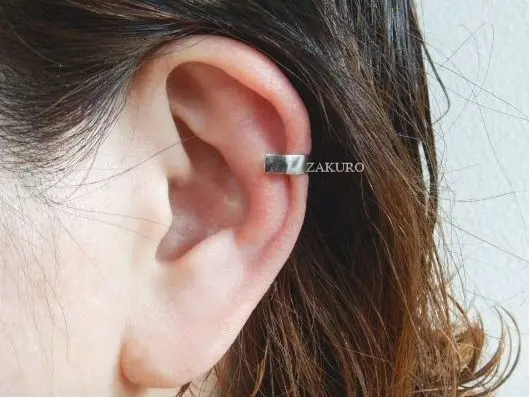 ゆらぎのある平面が耳に沿う、シルバー製のイヤーカフです。
