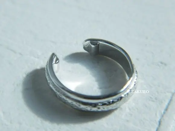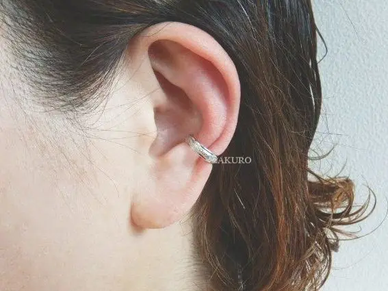 風化した岩肌のようなテクスチャーが特徴の、シルバー製イヤーカフ。