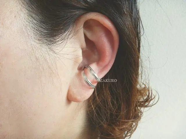 2本の線が重なるフォルムが印象的な、シルバー製イヤーカフ。