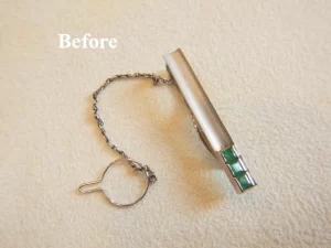 写真は、お父様から譲り受けたプラチナ製のタイピンを、