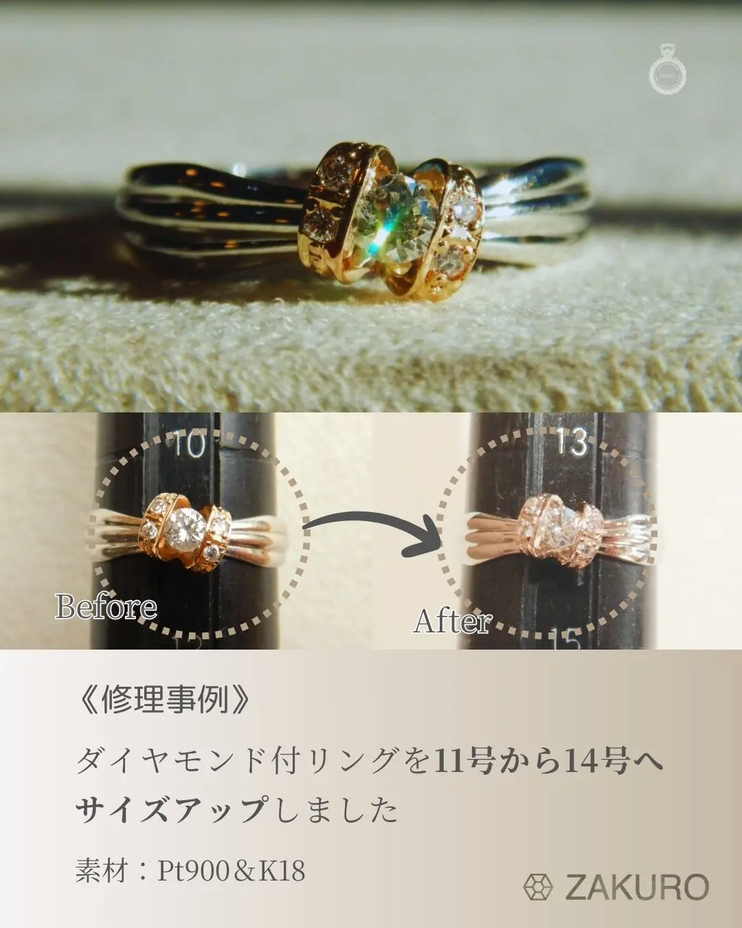 もう一枚の写真は、リングのサイズ直しの修理事例。