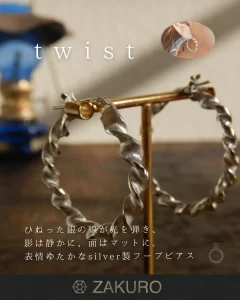 細長く切り出した銀板をひねり、立体的なフープへと成形。